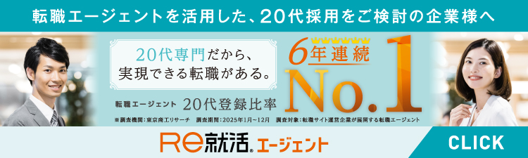 東証プライム上場・経団連加盟企業。2004年から、「20代通年採用」を提唱。会員数280万人の「(20代が選ぶ)20代向け転職サイト7年連続No.1・20代専門転職サイト〈Re就活〉」(2019年~2025年 東京商工リサーチ調査 20代向け転職サイト 第1位)や「30代向けダイレクトリクルーティングサービス〈Re就活30〉」、会員数60万人の「スカウト型就職サイト〈Re就活キャンパス〉」を軸に、20代・30代の採用をトータルにサポートする大手就職・転職情報会社です。